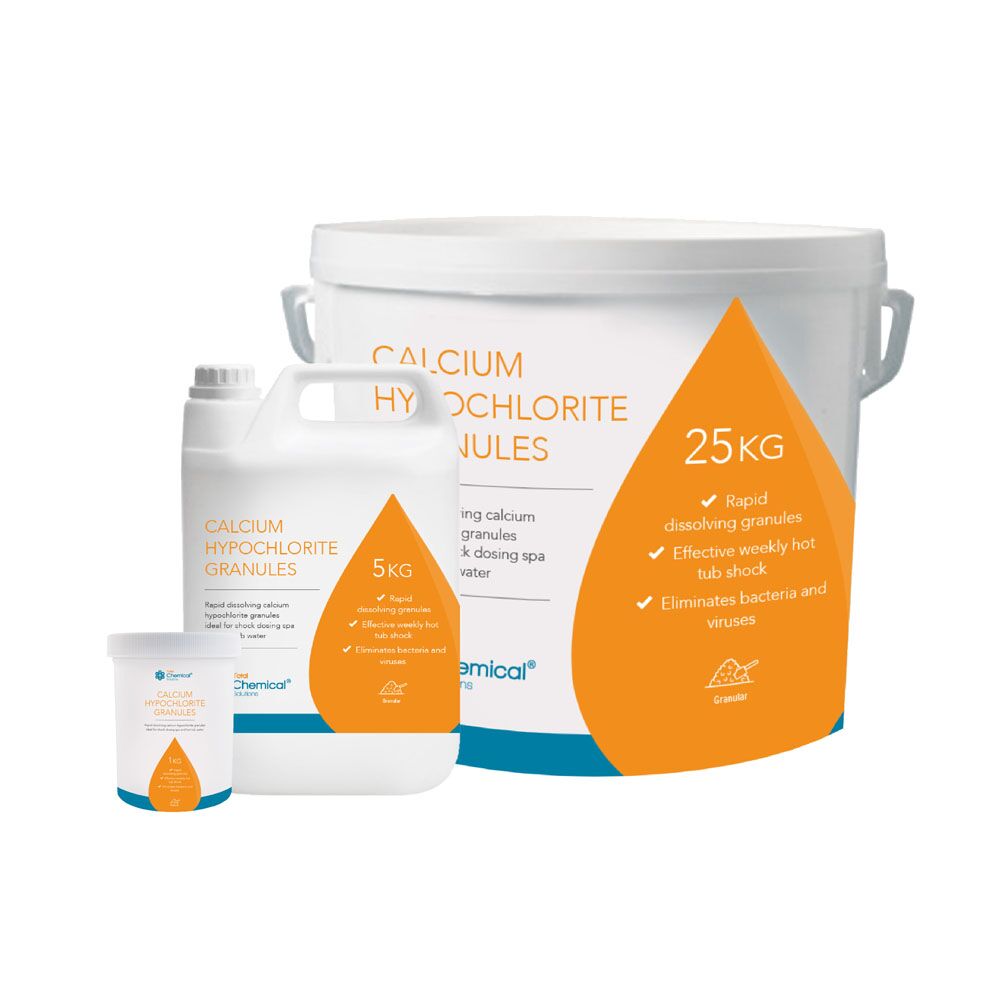 4. Add Calcium Hypochlorite Granules directly to circulating water with water temperature above 20 0C (for temperatures below 20°C add the product to 10 liters of clean water in a clean plastic container and add it directly to the circulating spa water.)